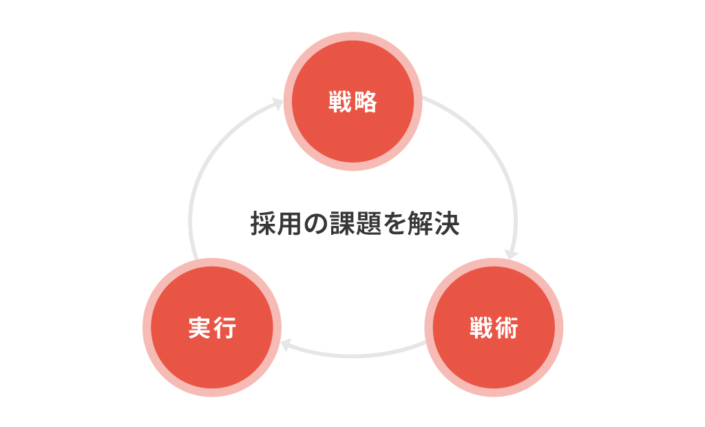 採用成果に拘るからこそ、戦略・戦術のコンサルティングだけでなく、実務の実行を重要視しています。変化の激しい社会において、状況に応じた戦略・戦術の変更は避けられず、採用活動のプロセスを通して獲得した「データ」と求職者の声など「ファクト」から採用課題を発見し、採用活動全体を柔軟に変化させていくことが求められます。プロフェッショナルであるレジェンダがそれをスピーディーに実行することで、よりよい採用成果に繋げていくのです。