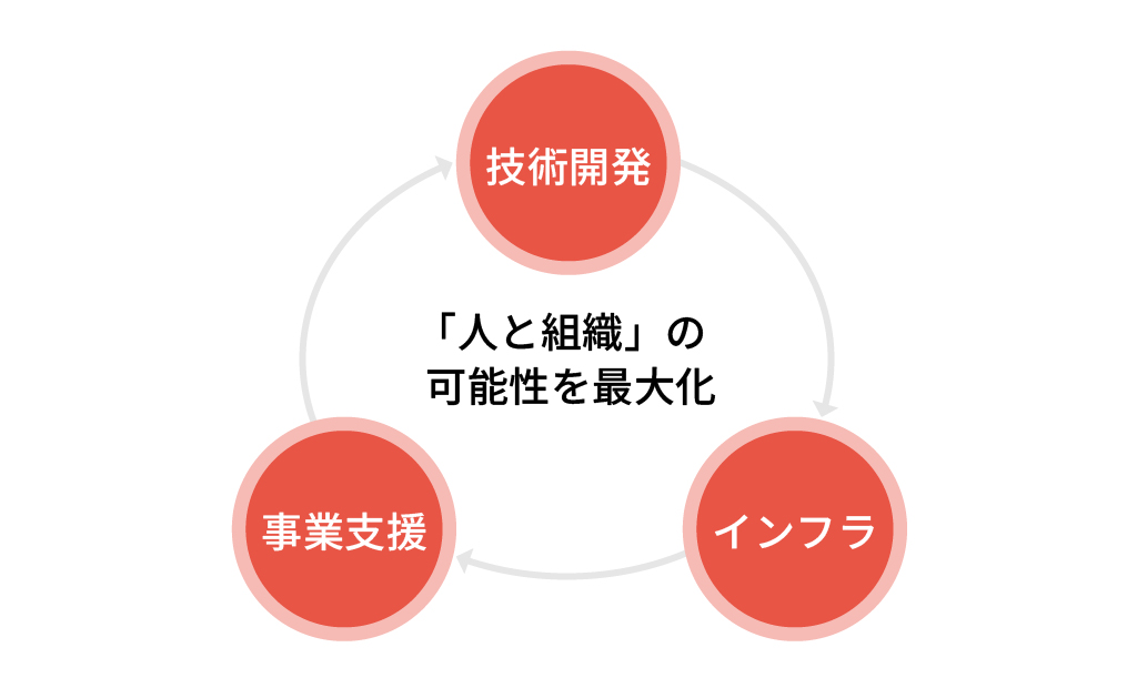 単なるプロダクトアウトではなく、実際のお客様や社内という実践の場があることで、技術による解決のトライアルや実行の仮説検証が行いやすく、また「人事のプロ」であるグループの知見を最大限活かした技術貢献を行います。
